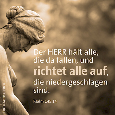 In den Psalmen gibt es wunderbare Aussagen über Gott, die wie Balsam für eine verwundete Seele sind. Hier ist ein Beispiel aus Psalm 145: „Der HERR stützt alle Fallenden und richtet alle Niedergebeugten auf" (Ps 145,14). Wenn uns die Kraft ausgeht; wenn wir in der Gefahr stehen, zu fallen, dann ist der HERR da, um uns zu stützen. Dann ist Er da - der Ewige, der Allmächtige -, um uns neuen Mut zu machen. Das will Er tun - und darauf sollen wir vertrauen! Denk nur mal an Elia, der völlig am Ende war und verzweifelt unter dem Ginsterstrauch saß, weil er sich vor der Rache Isebels gefürchtet hat. Wo er nur noch den Wunsch hatte, so schnell wie möglich zu sterben. Da stützt der HERR ihn, indem Er Elia erstmal Ruhe gönnt. Er schickt ihm durch einen Engeln einen gebackenen Kuchen und einen Krug Wasser. Und so gewinnt Elia neue Kraft, um seine Reise fortzusetzen. Vielleicht bist du auch gerade am verzweifeln und siehst keinen Ausweg aus deiner Situation. Dann nimm Hilfe in Anspruch, wenn Gott sie dir durch jemanden anbietet. Hilfe, zum körperlichen, seelischen, und geistlichem Ausruhen und neuen Auftanken. Der Herr möchte, dass du erlebst, dass du mit Seiner Hilfe Krisen überwinden kannst.
